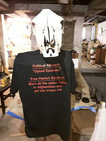 These pants got all of their stains and rips from years of work as a housepainter and handy person. The denim jeans are size 33 waist 32 length and the white pants are Dickies brand size 32 waist 32 length. Half of all the proceeds from the sale of this pants will go to NAMI, an organization that helps those with mental illness.
